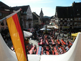 Wir genossen bei herrlichem Sonnenschein auch den Ausblick vom Rathausbalkon auf die Stadt, in der wegen