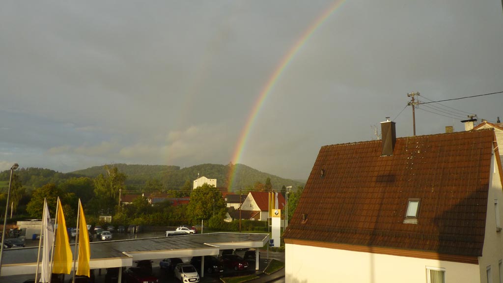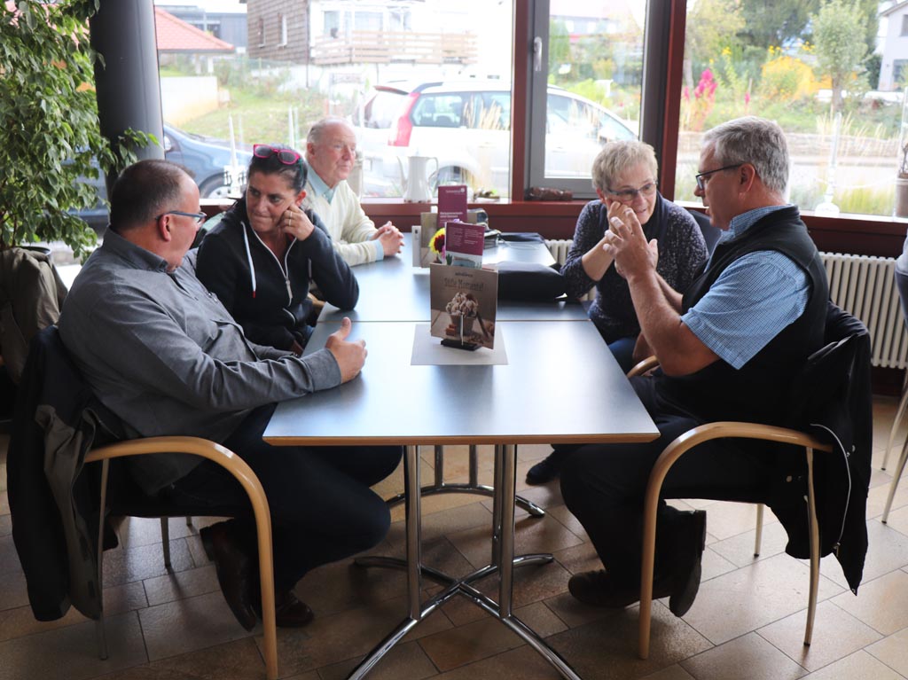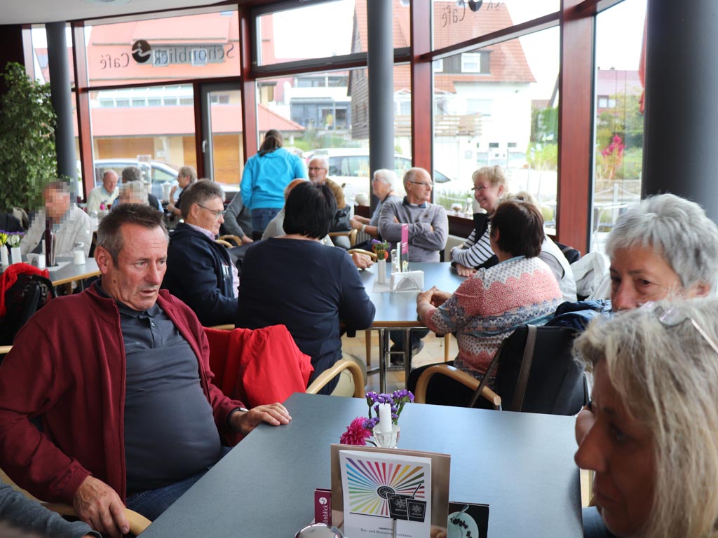 Mit diesen ersten Eindrücken im Gepäck setzen wir unsere Reise fort und im weiteren Verlauf hatte Wolfgang uns eine Überraschung versprochen: Ein Freund von ihm hatte uns zu Kaffee und Kuchen in ein schönes Cafe in Schwäbisch Gmünd eingeladen.