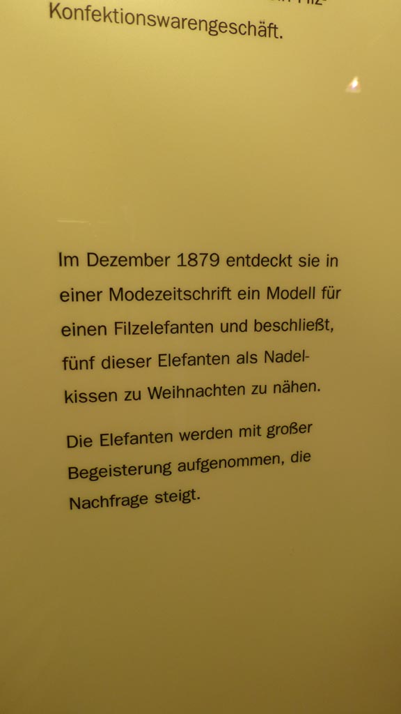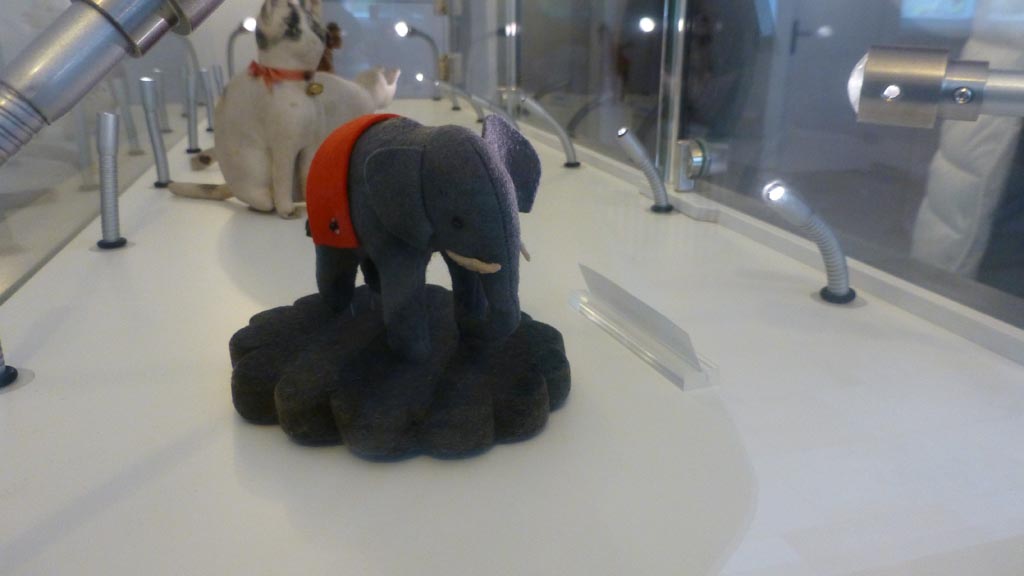 Zu besichtigen im Geburtshaus von Margarete Steiff ist auch der kleine Elefant, mit dem ihre „Karriere“ eigentlich begann. Gedacht war dieser Stoffelefant als Nadelkissen, aber die Kinder der damaligen Zeit betrachteten den weichen Elefanten eher als ein kuscheliges Spielzeug.