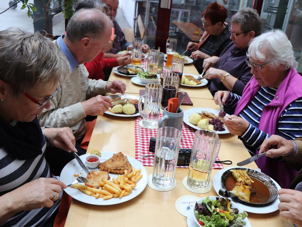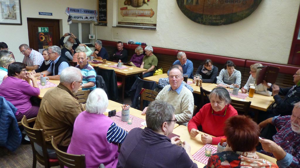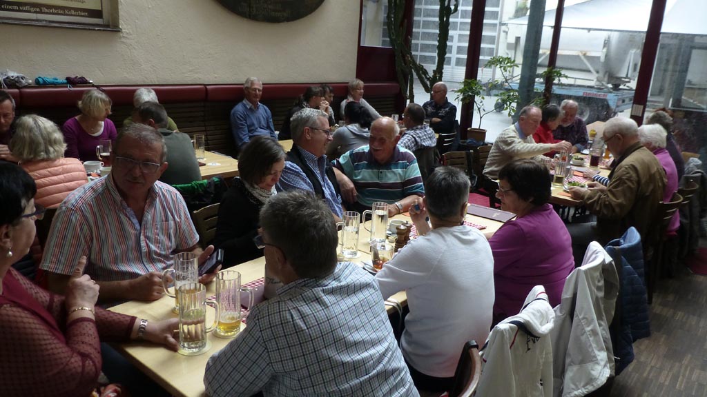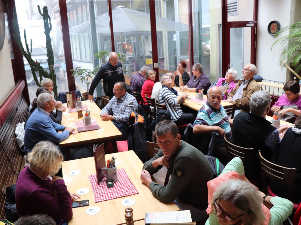 Zum Mittagessen wurden wir in ein sehr schönes Lokal geführt und danach trafen wir uns zu einer Führung vor dem Ulmer Münster. Aufgeteilt in zwei Gruppen erhielten wir Einblick in die Geschichte dieser beeindruckenden Kirche mit vielen Details und Erklärungen.