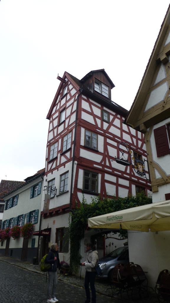 Unser Rundgang, bei dem wir immer wieder unseren Regenschirm aufspannen mussten, führte uns auch am ältesten Haus der Stadt vorbei. Dieses Haus gehörte der Familie, aus der Margaretes Mutter stammte. Wir erfuhren, dass Margarete dort viel Zeit in ihrer Kindheit verbracht hat.