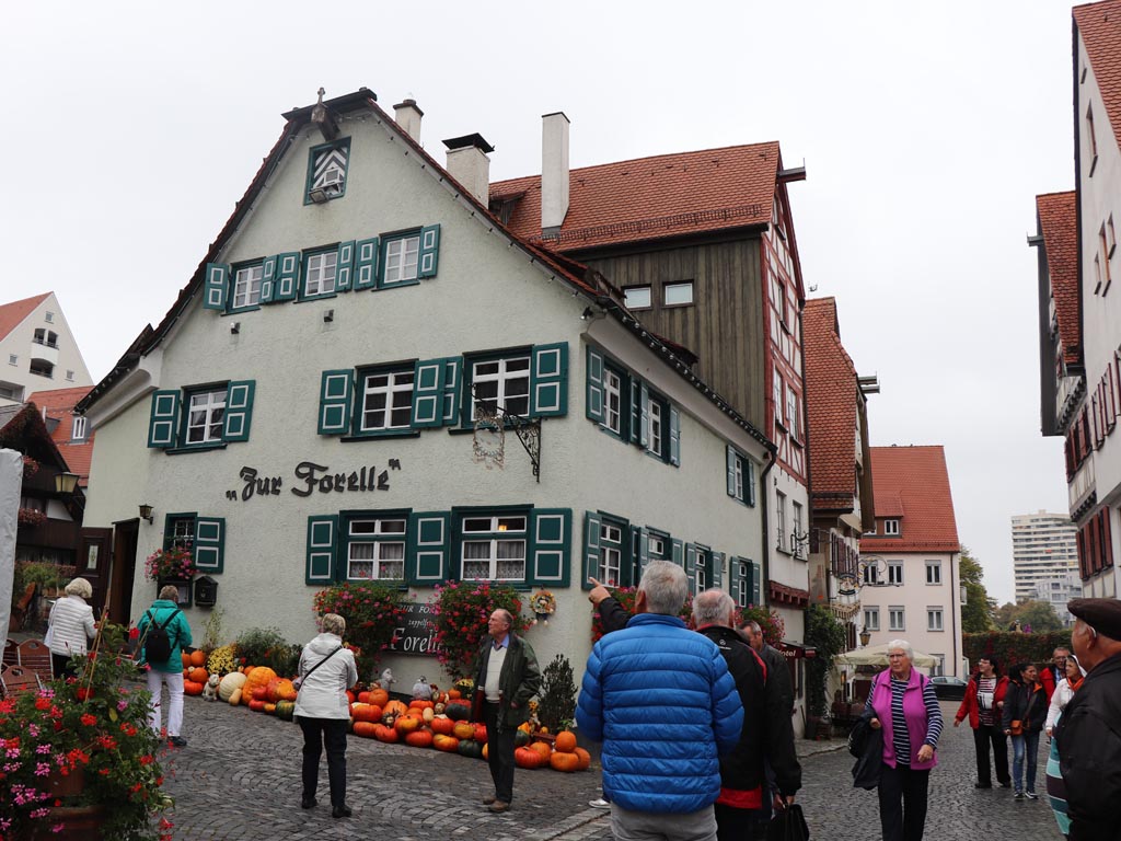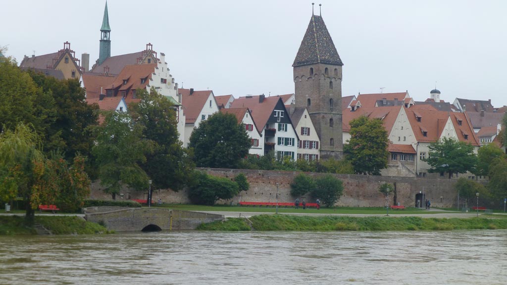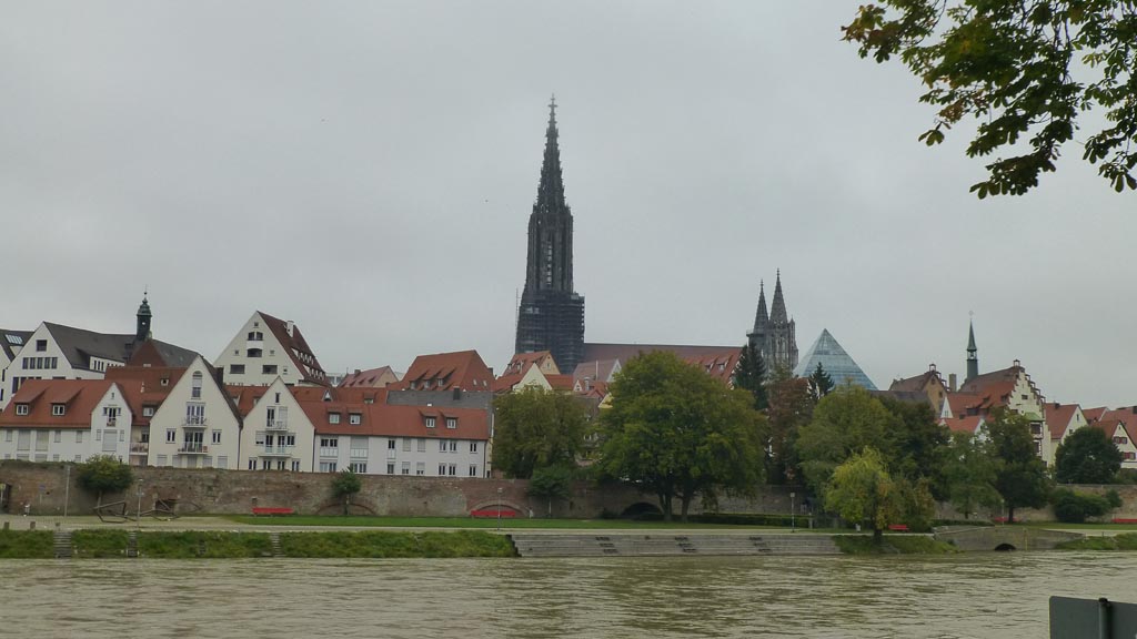Nach dem Frühstück und Verladen unseres Gepäckes in den Bus fuhren wir am Sonntag, unserem letzten Reisetag, nach Ulm. Dort erwartete uns ein Reiseführer, der zu uns in den Bus stieg und uns in einer knapp zweistündigen Rundfahrt viele Informationen zur Geschichte, früher und heute, gab. Wir machten auch einen kurzen Abstecher nach Neu-Ulm ins benachbarte Bayern (scherzhaft auch als das feindliche Ausland bezeichnet). Am Ufer der Donau hatten wir einen schönen Blick auf die gegenüberliegende Stadt Ulm mit einigen markanten Sehenswürdigkeiten. An erster Stelle natürlich das Ulmer Münster mit dem höchsten Kirchturm der Welt.