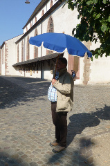 Außer der hervorragenden Führung hatte Ruth noch eine Überraschung parat: Auf einem Platz beim Kloster Leonhard, mit Blick auf den Rhein, kredenzten Freunde von ihr Häppchen, Gugelhupf und einen köstlichen Wein