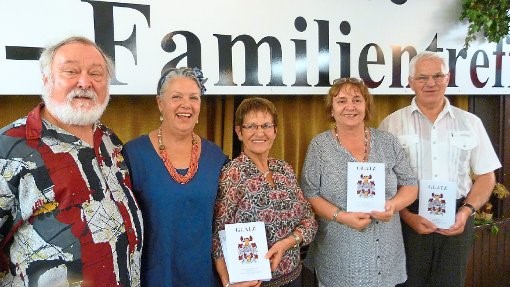 Der Vorstand der Glatz-Familie präsentiert stolz das neu herausgebrachte erweiterte Sippenbuch (von links): Wolfgang Glatz, Elisabeth Glatz-Noll, Fridi Glatz, Margrit Glatz und Robert Glatz. Foto: Vögele